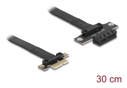 This PCI Express riser card by Delock is used to connect a PCI Express x1 card. The flexible cable allows a space-saving installation inside the computer case.