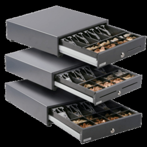 Sportello cassa, Apertura frontale, Impiego: 4 scomparti per banconote (orizzontale), 8 scomparti per monete, removable, Lucchetto a 3 pos., chiusura analoga, Dimensioni, B 350mm, H 100mm, T 405mm, incl.: Cavo (RJ12, 1.5 m), Colore: antracite
