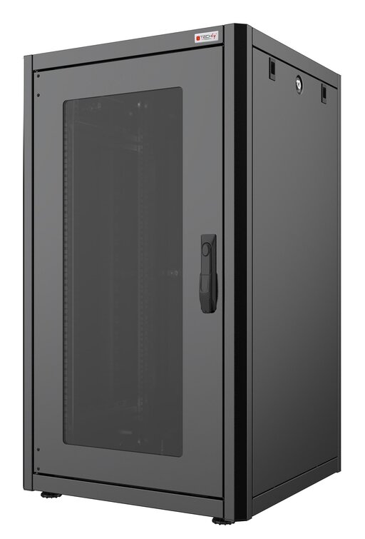 Armadio Networking 19?on porta frontale anta singola in vetro 4mm reversibile e maniglia con serratura a chiave
