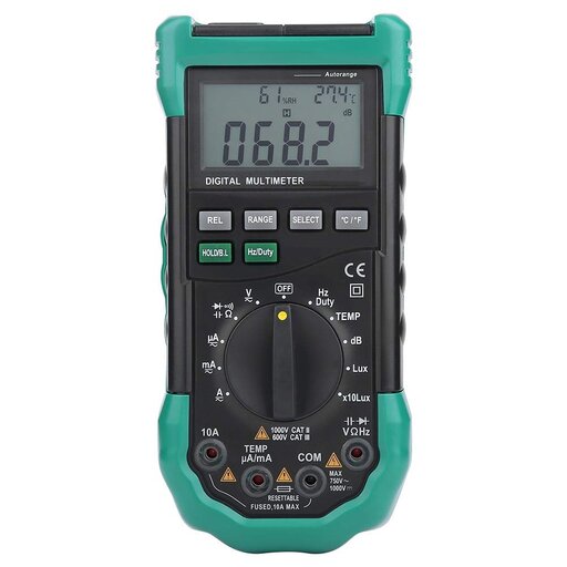 • Multimetro digitale con misurazioni ambientali: temperatura, umidità relativa, livello del suono e della luminosità
