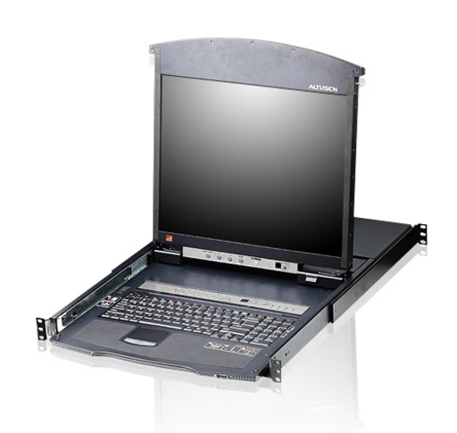 ALTUSEN KL1508A LCD KVM Switch features independently retractable, dual slide 17" or 19" LED-backlit LCD monitor and keyboard with built-in touchpad. The KL1508A KVM switches are control units that allow IT administrators to access and control multiple computers from the LCD console and an extra PS/2 or USB KVM console. For increased reliability and efficiency, RJ-45 connectors and Cat 5e/6 cable are used to link to the computers. Utilizing KVM Adapter Cables for the final linkup, the KL1508A permits any combination of PCs, Macs, Sun computers, and serial devices to coexist on the installation. These switches have been designed with unique and powerful features that enable administrators to manage their entire server room and data center devices easily and conveniently.