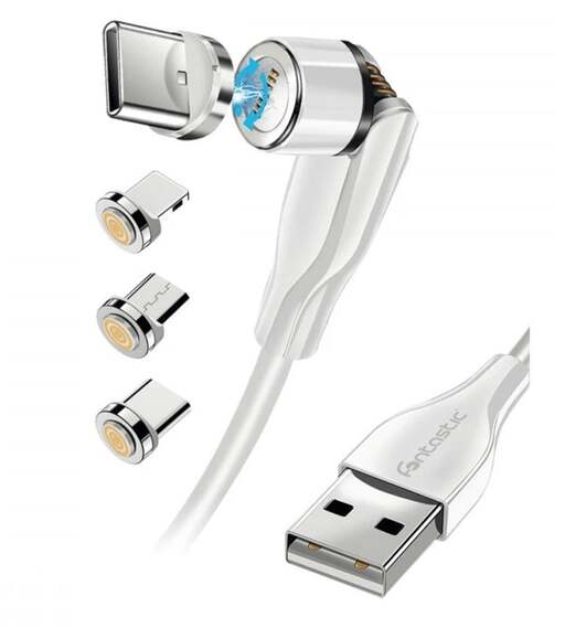 Cavo magnetico di ricarica rapida 3 in 1 per la ricarica e il trasferimento dati. Con connettori intercambiabili a 8 pin, USB Type-C™ e Micro USB.