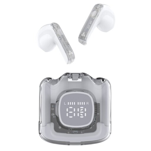 • Auricolari Bluetooth v5.3 con custodia di ricarica trasparente ICSB-EBTWS148WH