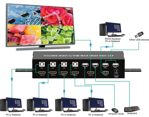 • Supporta la condivisione di 4 ingressi HDMI e una sola uscita