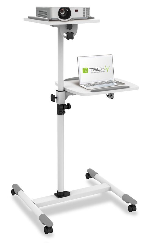 Questo carrello regolabile in altezza è molto versatile ed è dotato di un ampia superficie in grado di contenere laptop, videoproiettore, beamer, caricabatterie, mouse e molto altro.