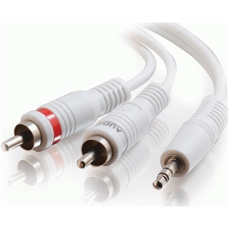 3.5mm Stereo to RCa Stereo audio cables from Cables To Go are specifically designed to connect a PC sound card, portable CD player, MP3 player, iPod, or any mini-stereo audio device with 3.5mm jacks to other audio devices with RCa audio jacks. These cables feature two 26-gauge Oxygen-Free copper conductors, a drain wire, and an aluminium foil shield to reject noise.