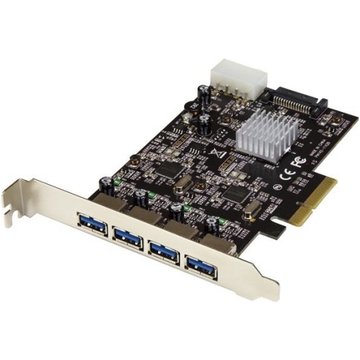 Con questa scheda USB 3.1 PCIe è possibile aggiungere quattro porte USB Type-A al computer tramite uno slot PCI Express. La presenza di due canali indipendenti da 10 Gbps consente di potenziare facilmente il computer in uso con la velocità superiore della tecnologia USB 3.1 Gen 2. L'accesso alle periferiche di ultima generazione avviene così a una velocità due volte superiore rispetto a quella delle schede USB 3.0 (USB 3.1 Gen 1) tradizionali.