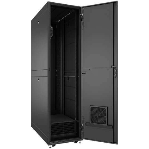 L’unità VRC-S offre una soluzione completa per micro data center che permette di convertire rapidamente le aree non condizionate in uno spazio IT edge preconfigurato per le infrastrutture IT critiche. L’unità è completamente assemblata in fabbrica. Questa soluzione è costituita da un cabinet basato sul rack VR3307 (48U, 1200 mm di profondità, 600 mm di larghezza) con un modulo di raffreddamento split da 3,5 kW preinstallato e pre-caricato (VRC202KIT-L) che fornisce aria fredda direttamente all’attrezzatura IT critica. L’unità VRCS3307-230VSL comprende un’unità con condensatore esterno per una temperatura ambiente minima fino a -34 °C. Il calore rimosso viene convogliato fuori dalla struttura dell’edificio. Il collegamento dei due elementi di raffreddamento non è incluso. Il sistema rack separa l’aria fredda nella parte anteriore dall’aria calda di scarico nella parte posteriore. Il sistema di raffreddamento è supportato da un ventilatore di emergenza a controllo indipendente. L’unità Vertiv VRC-S è inoltre dotata di una Vertiv Geist rPDU monofase intelligente GU30017L (spegnibile da remoto e monitorata a livello di singola uscita), 32 A, 230 V, montata in verticale con blocco IEC60320 C13 (20) e C19 (4), sensore di temperatura rack (1), cavo di alimentazione esterno da 2,5 m e spina IEC60309 2P + E 32 A. La PDU è collegata ai sensori di temperatura e di contatto della porta. L’intero sistema può essere gestito tramite un unico indirizzo IP con Vertiv Intelligence Director. La soluzione VRC-S ha garanzia standard di 3 anni. Vertiv offre servizi opzionali di installazione e manutenzione preventiva. Ideale per armadi IT, sale computer di piccole dimensioni e spazi edge computing.