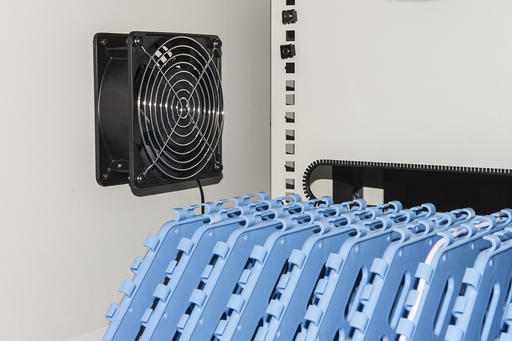 Armadio con chiusura a chiave che permette la protezione e lialimentazione di 40 notebook o tablet custoditi all'interno. Ideale per scuole o uffici, dove si necessiti di un posto sicuro in cui alloggiare dispositivi elettronici, dando la possibilitê di ricaricarsi e impedendo il loro surriscaldamento. Con due multiprese posteriori con 20 prese universali italiane/Schuko ciascuna, a cui collegare i cavi e gli adattatori dei dispositivi da ricaricare. I dispositivi si posizionano in verticale sui ripiani, separati da divisori. I cavi di alimentazione per i dispositivi si possono organizzare agganciandoli a delle alette sui ripiani. Ci si possono alloggiare dispositivi di misura massima cm 28 x 37, altezza cm 2,3. I separatori dei ripiani sono removibili, in questo modo si possono alloggiare anche notebook o altri dispostivi piØ larghi. Con 4 ruote incluse di cui due bloccabili. Con porte traforate con chiusura a chiave, permette la protezione dei dispositivi contenuti mentre si ricaricano. Con due ripiani con 20 alloggiamenti per notebook o tablet ognuno. Con maniglia per facilitare lo spostamento del carrello di ricarica. L'armadio Å in acciaio, colore bianco e bordi arrotondati in plastica neri, si adatta alliarredamento di tutti gli ambienti, con porte traforate, assicura la protezione dei dispositivi interni, e ne permette l'areazione grazie alla porta grigliata e alle quattro ventole di raffreddamento incluse (due per lato). La porta anteriore e posteriore hanno la chiusura a chiave. Cavo di alimentazione incluso con spina italiana 16A Lunghezza metri 2,5. Durante gli spostamenti delliarmadio il cavo si puÿ alloggiare nelliapposito vano. Con alimentatore incluso AC200/110V con funzione di protezione contro sovraccarichi. Misure con ruote (LxPxA): cm 75x60x102 Misure senza ruote (LxPxA): cm 75x60x86