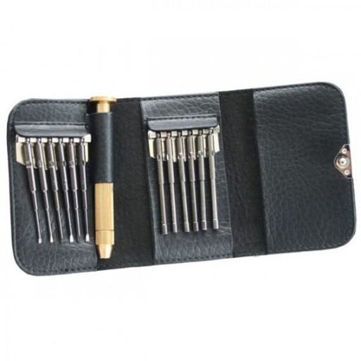 Specifiche prodotto: 1x Cacciavite di precisione 3x Inseri a croce PH000, PH00, PH0 3x Inserti a taglio 1,5, 2,0, 2,5mm 1x Inserti a punte esagonali HN2,5 4x Inserti a punta Torx T5, T6, T7, T10 1x Inserti a tubo Torx TN8 Custodia in similpelle nera