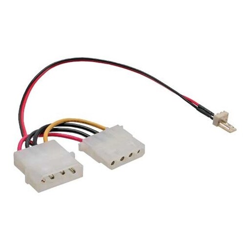 Questo cavo alimentazione consente di alimentare una ventola utilizzando il connettore a 3 poli della scheda madre direttamente ad un connettore 12V Molex 5,25pollici a 4 poli dell' alimentatore senza impedire l' alimentazione di un' ulteriore periferica 5,25pollici. Non supporta segnale tachimetrico.